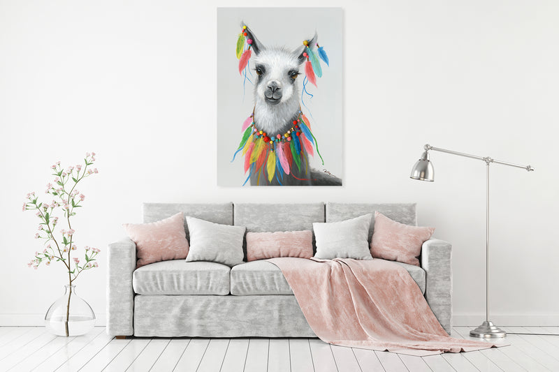 "Feathered Llama" Oil Painting